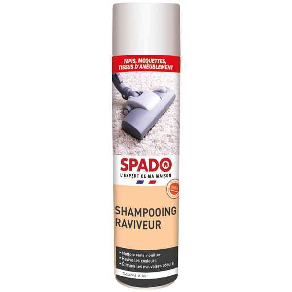 Le shampooing pour moquette et tapis aérosol 600 mL de la marque SPADO détache et nettoie en profondeur les tapis, moquettes, tissus d'ameublement lavables en fibres naturelles ou synthétiques. Il saura raviver les couleurs et leur redonner vie ! Détachant à sec, il est très facile d'utilisation.
