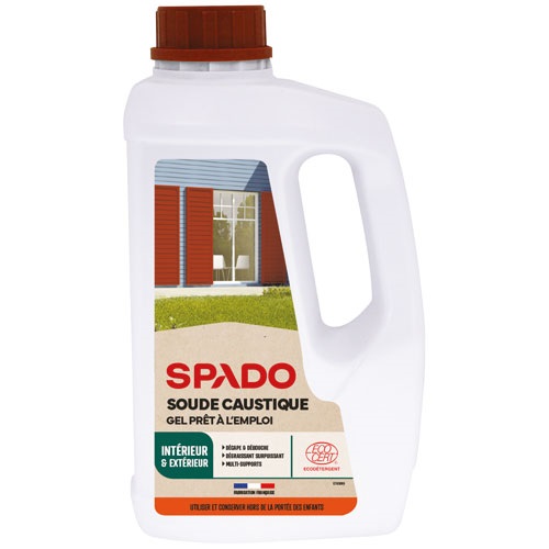 La soude caustique en gel de 1 Lde la marque SPADO décape en profondeur des vernis et des peintures, lasures, vitrificateurs, cires. Nettoie et dégraisse les supports gras et carbonisés. Débouche les canalisations. Prête à l emploi. Formule gélifiée qui garantie un résultat optimal.Décape vernis et peintures. Débouche les canalisations. Dégraissant surpuissant. Formule gel prête à l emploi.