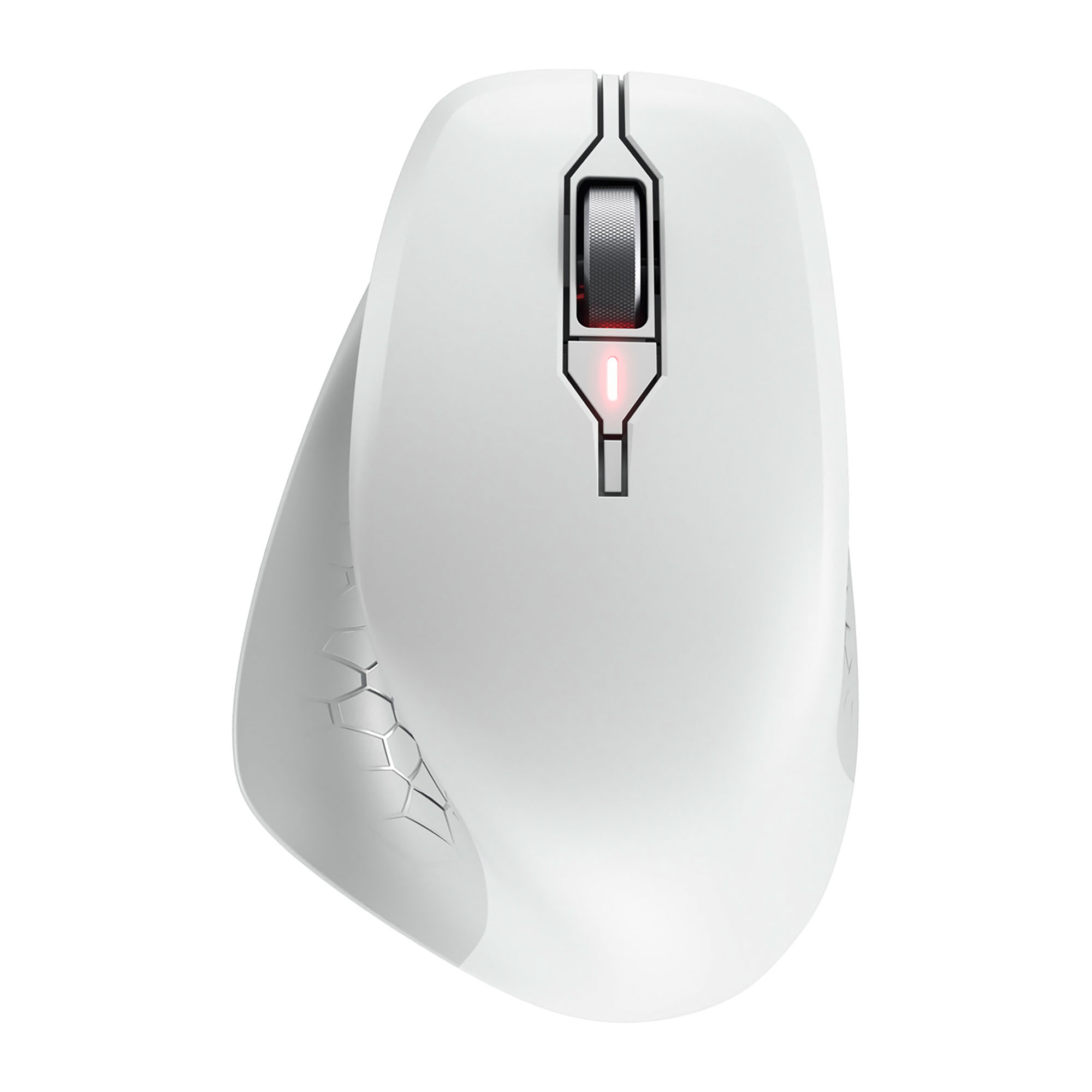 Souris sans fil ergonomique avec légère inclinaison et repose-pouce en caoutchouc, idéale pour les moyennes et grandes mains.
