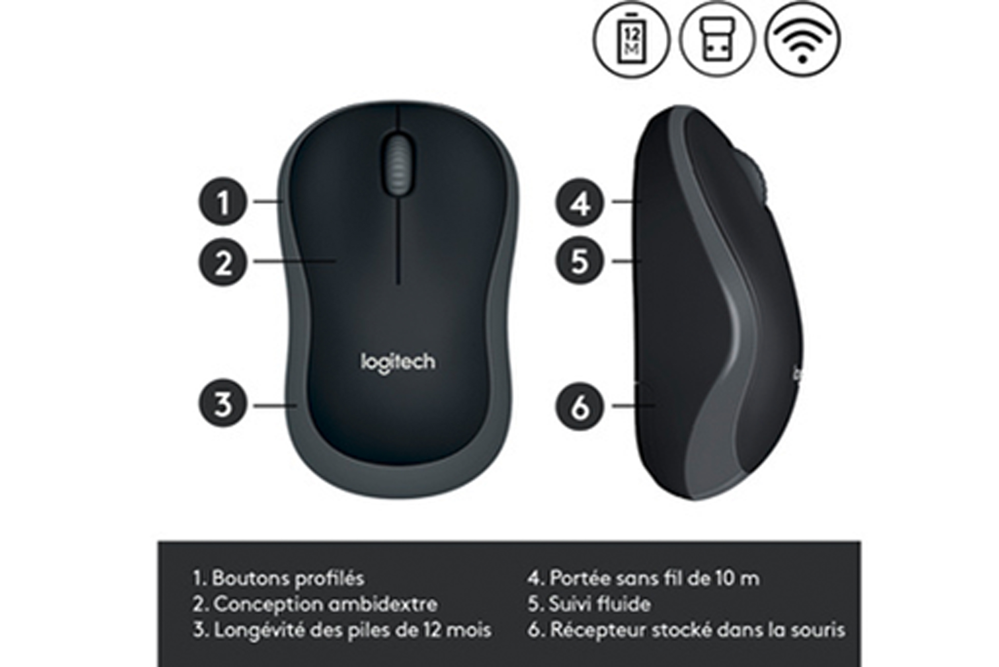 Fournie avec 1 pile AA et un récepteur USB.
