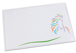 Description détailléeBrillant et ultra transparent, avec gaufrage d'une ligne et imprimé avec motif, 400 x 530 mm, épaisseur: 0,8 mm, robuste, nettoyable, durable