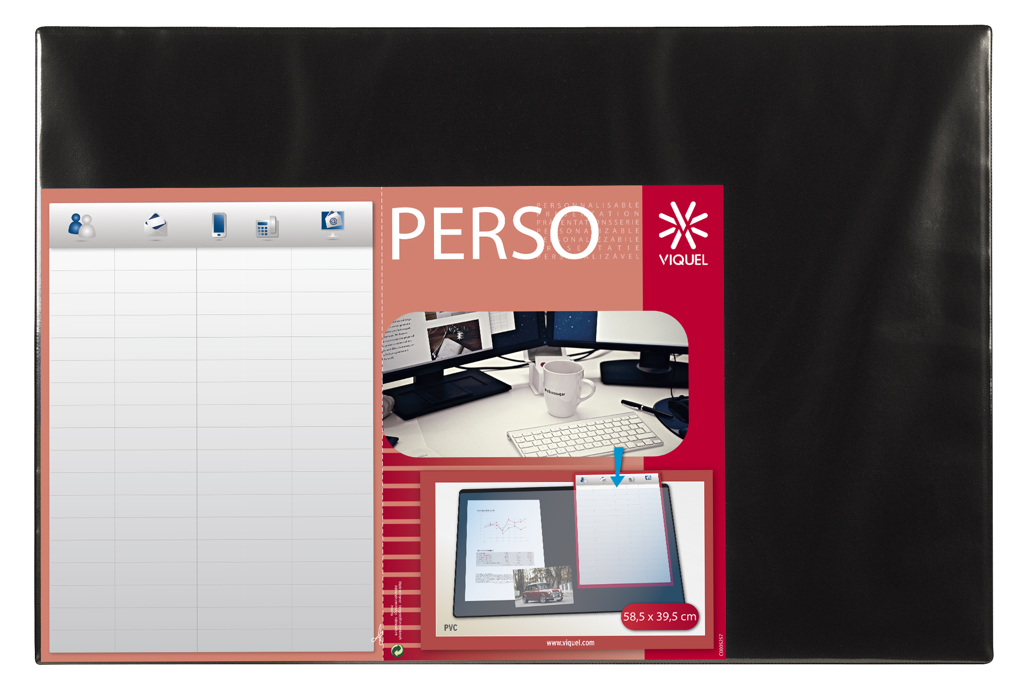 Grâce à sa pochette de personnalisation vous pouvez décorer votre bureau avec vos photos, emploi du temps, répertoire téléphonique
