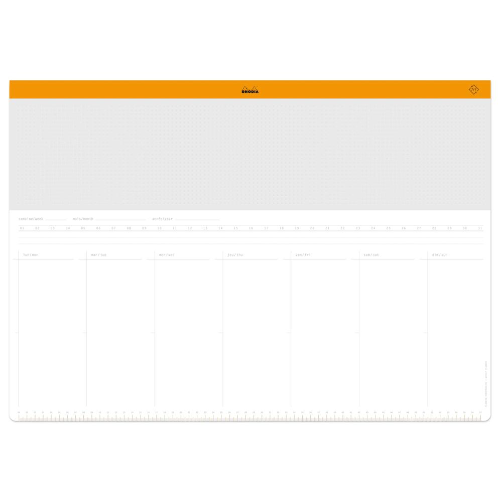 Sous-main semainier : la praticité du sous-main, la fonctionnalité du semainier. Deux-en-un, le sous-main semainier est à la fois support du clavier/souris et outil d'organisation et de gestion du temps. Parfait pour être efficace et productif, rester concentré, se projeter et avoir une visibilité de chaque instant sur la semaine en cours, côté pro (rendez-vous, réunions, échéances, urgences, objectifs, déjeuners d'affaire...) ou côté perso (listes de tâches, rendez-vous, projets, activités, anniversaires...). Outre les sections utiles, un espace de prise de notes libres, pour laisser libre cours à son imagination, inscrire rapidement un numéro... ou, pourquoi pas, griffonner pendant un appel téléphonique ! 30 feuillets encollées détachables, sole cartonnée, dessous antidérapant sous-mains, agenda, planner, tapis de souris