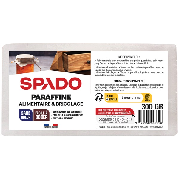 Facilite la glisse des éléments pour le bricolage (tiroirs, etc.). S?utilise pour la conservation des confitures. Etat physique : solide. Couleur : blanche.Facilite la glisse des éléments S?utilise pour la conservation des confitures