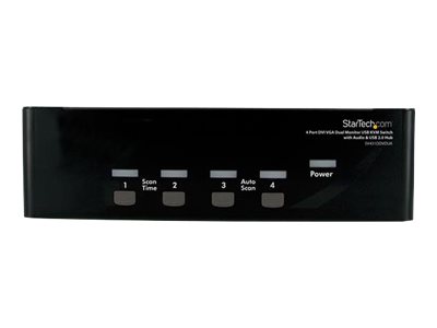 Le commutateur KVM DVI VGA à 4 ports pour deux écrans, SV431DDVDUA, vous permet de contrôler quatre ordinateurs à deux écran à l’aide d’un seul ensemble de périphériques USB (souris et clavier).