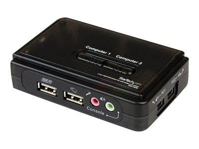 Le kit commutateur KVM USB noir 2 ports avec audio et câbles vous permet de commander deux ordinateurs dotés de ports USB à l’aide d’un seul ensemble clavier, souris et moniteur VGA ; il permet également le fonctionnement à touche directe et à bouton poussoir du panneau supérieur pour basculer entre les écrans connectés. Conçu pour une intégration parfaite dans tous les environnements, le commutateur KVM USB offre une conception compacte (environ la taille d’un jeu de cartes) ; il est alimenté par les ordinateurs auxquels il est connecté, supprimant ainsi la nécessité d’une alimentation externe. Le commutateur KVM USB est une solution idéale pour quasiment toutes les applications, il prend en charge des résolutions vidéo d'au plus 2048 x 1536 ainsi que la commutation audio. Le commutateur KVM USB inclut deux câbles hôtes 1,22 m VGA 2-en-un et USB, pour une installation rapide ; il offre une solution KVM prête à l'emploi. Le commutateur KVM permet un contrôle pratique et fiable de plusieurs ordinateurs à partir d’une seule station périphérique.