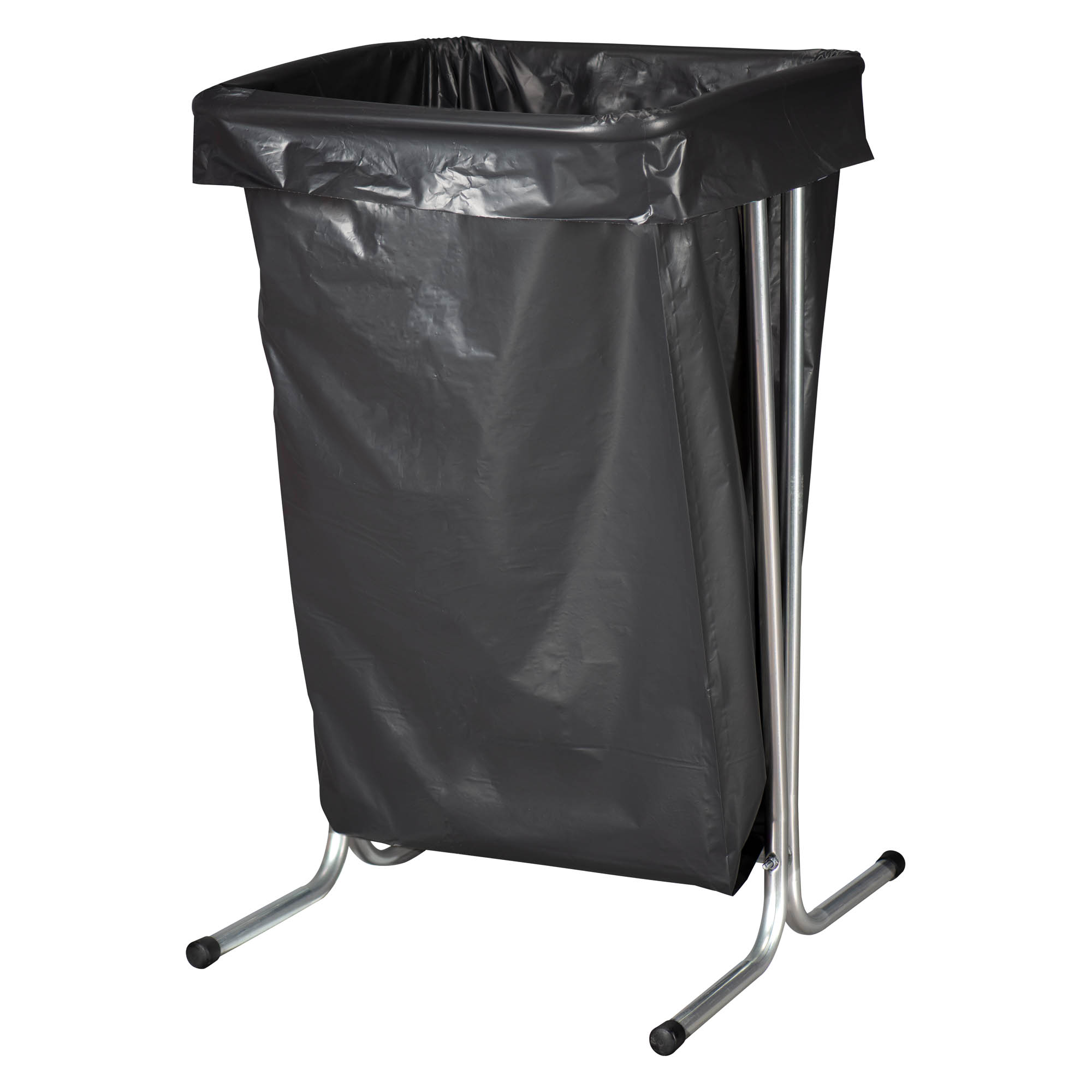 Le sac poubelle est maintenu ouvert par tension entre les 2 armatures, le remplissage se fait très facilement.
