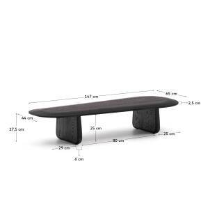 Table basse Pirita en bois de chêne finition noire 146 x 56,5 cm