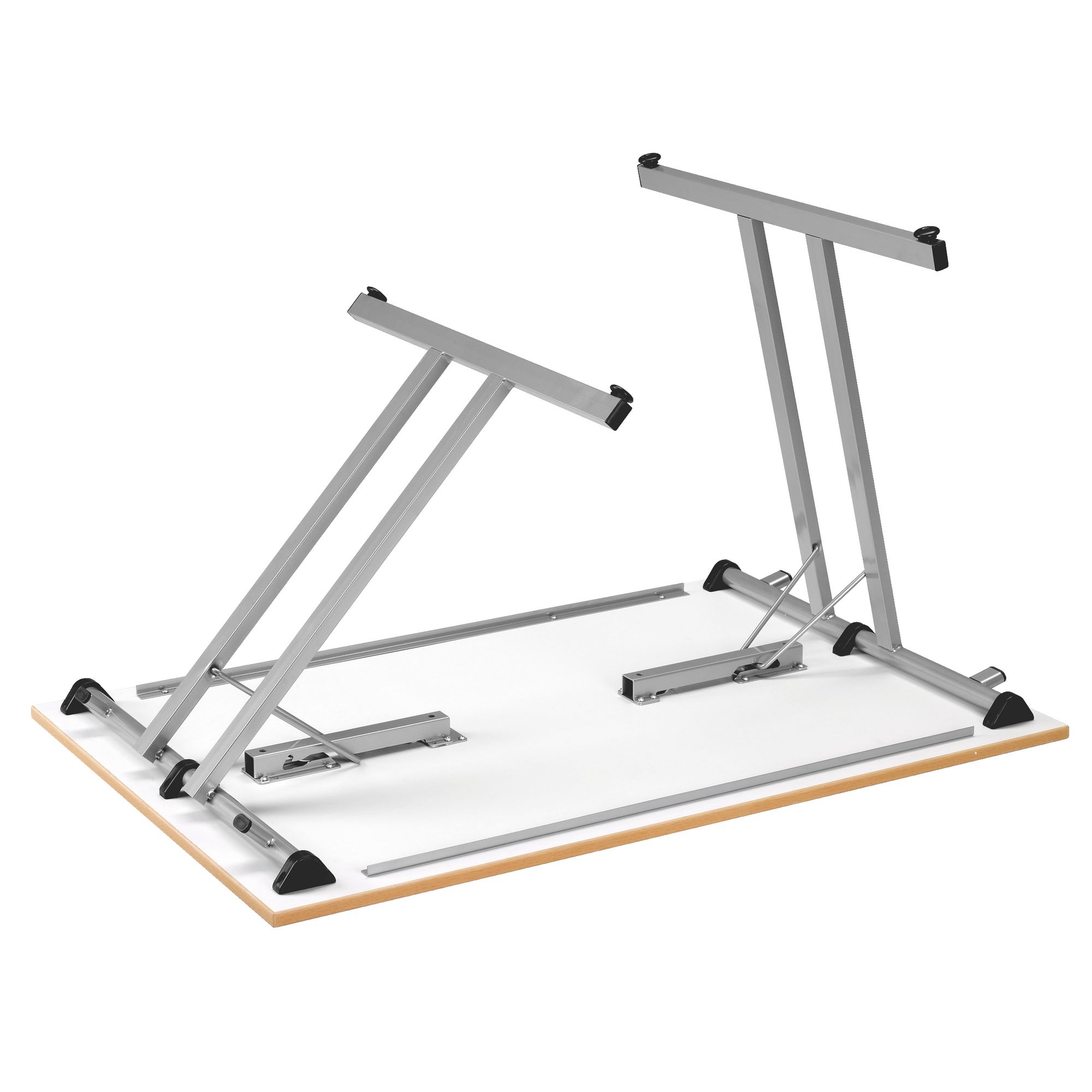 Structure de plateau avec panneaux de particules mélaminées épaisseur 19 mm. Piétement métal central, vérins.
