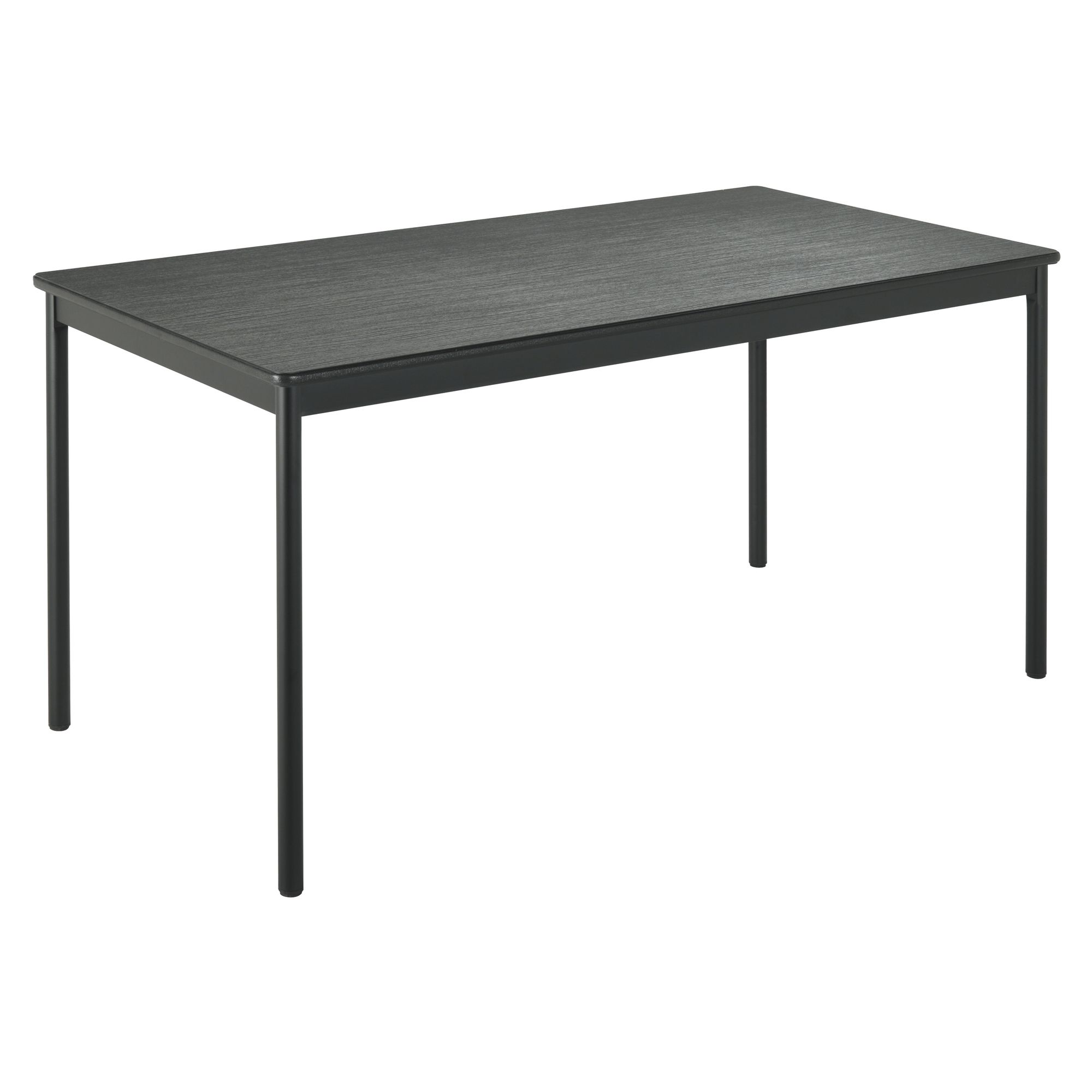 Plateaux 140 x 70 cm, panneaux de particules mélaminés, épaisseur 19 mm, H 75 cm.Chants souples avec bordure antichoc PVC 3 mm.Piétement rond Ø 32 mm, finition époxy anthracite. Vérins.