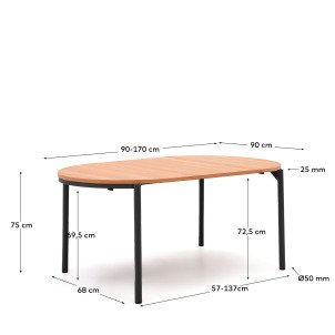 Table ronde extensible Montuiri en placage de chêne ø 90 (170) cm