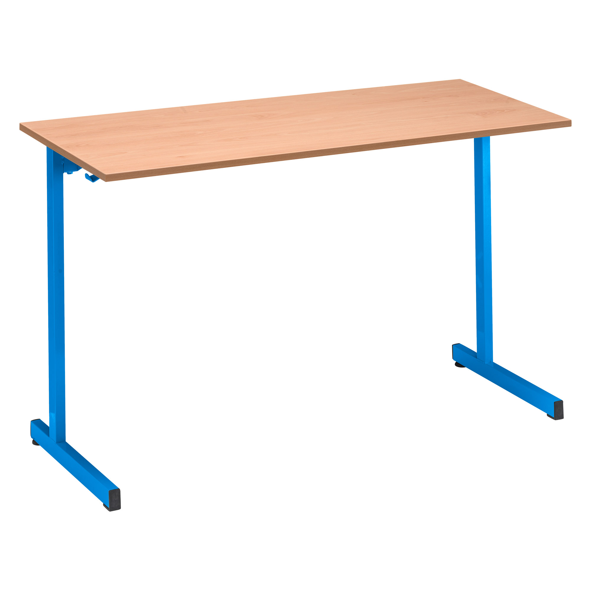 Table scolaire 2 places avec plateau panneau mélaminé décor hêtre 2 faces.