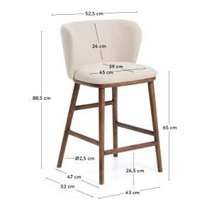 Tabouret Ciselia en chenille épaisse beige et pieds en bois de frêne avec finition ton noyer FSC Mix Credit 65 cm