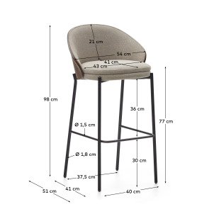 Tabouret Eamy marron clair placage de frêne finition wengué et métal noir hauteur 77 cm