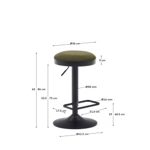 Tabouret Zaib en chenille vert foncé et acier noir mat hauteur 58-80 cm
