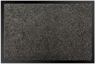 Description détailléeAnthracite, 100% polyester, paillasson absorbant, aspect frisé, contour et dos en vinyle antidérapant, poids: 3.000 g/m2, hauteur totale: 10 mm, lavable à 30 degrés