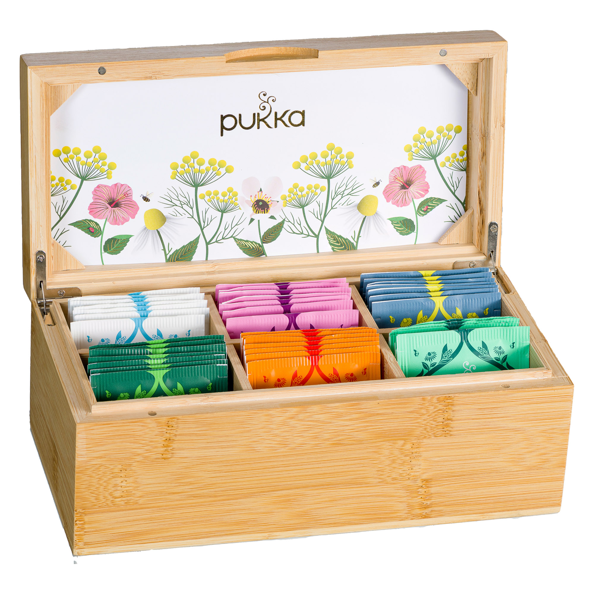 Composé de 6 variétés de 7 sachets : Matin Citronné, Secret de Cassis, Thé Vert Matcha Suprême, Relax, Trois Gingembres, Citron Gingembre et Miel de Manuka.