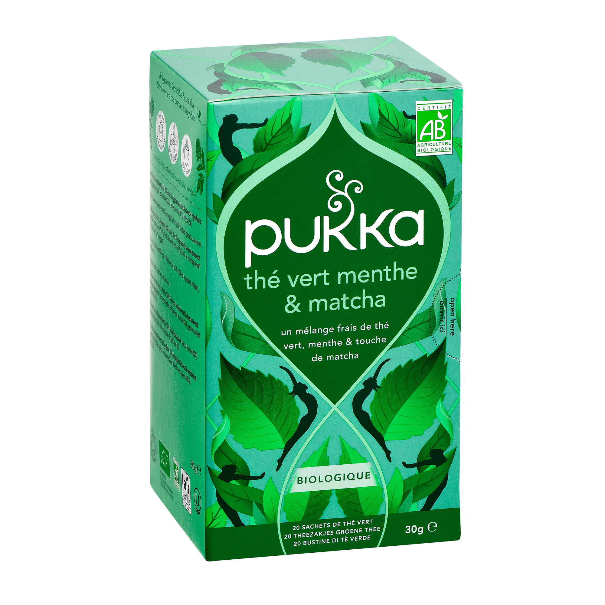Alliance de thé vert Sencha (60%), de menthe verte (20%), de menthe poivrée (18%) et d’une touche de matcha japonais (2%).