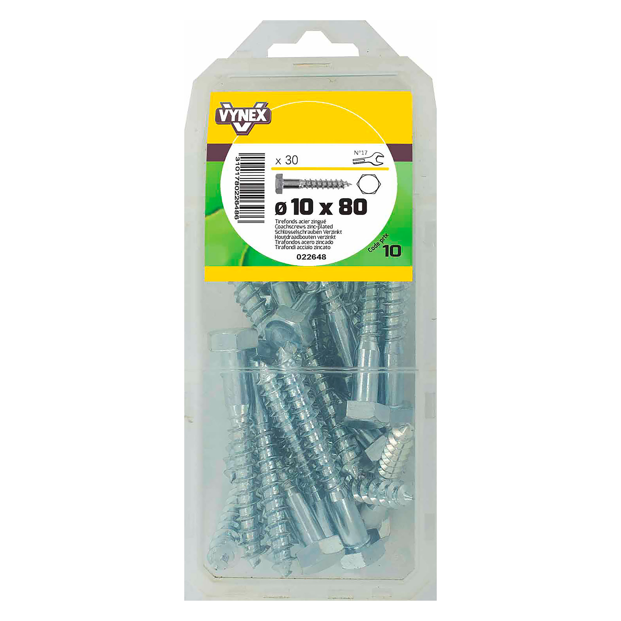 Tirefond acier zingué Ø 10 x L 80 mm - Paquet de 30