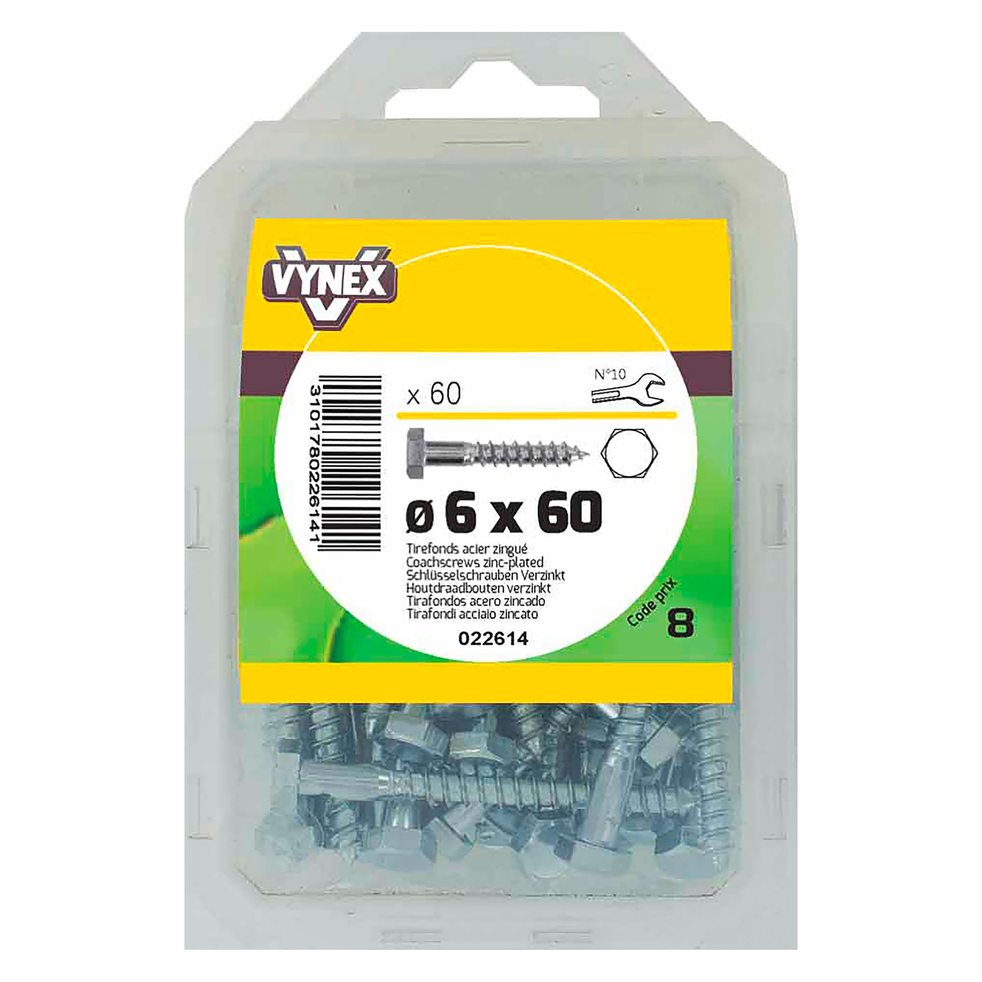 Tirefond acier zingué Ø 6 x L 60 mm - Paquet de 60