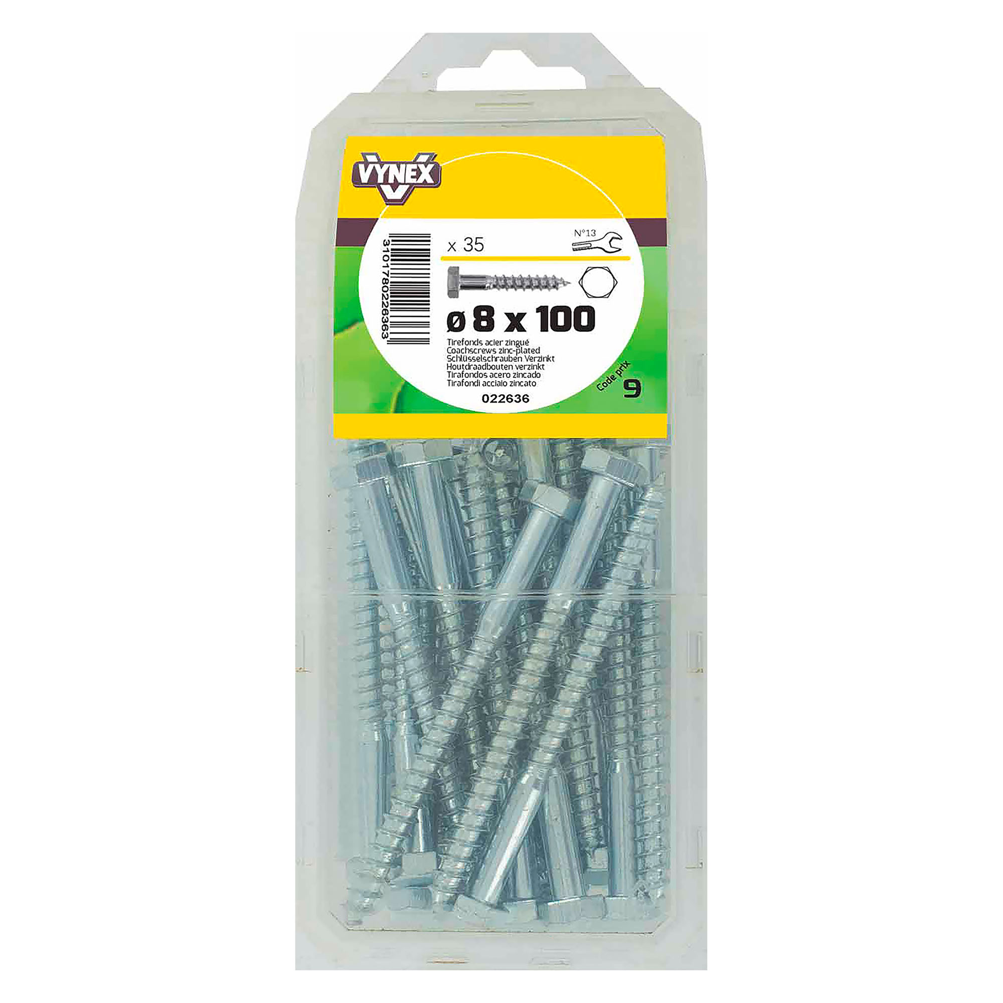 Tirefond acier zingué Ø 8 x L 100 mm - Paquet de 35