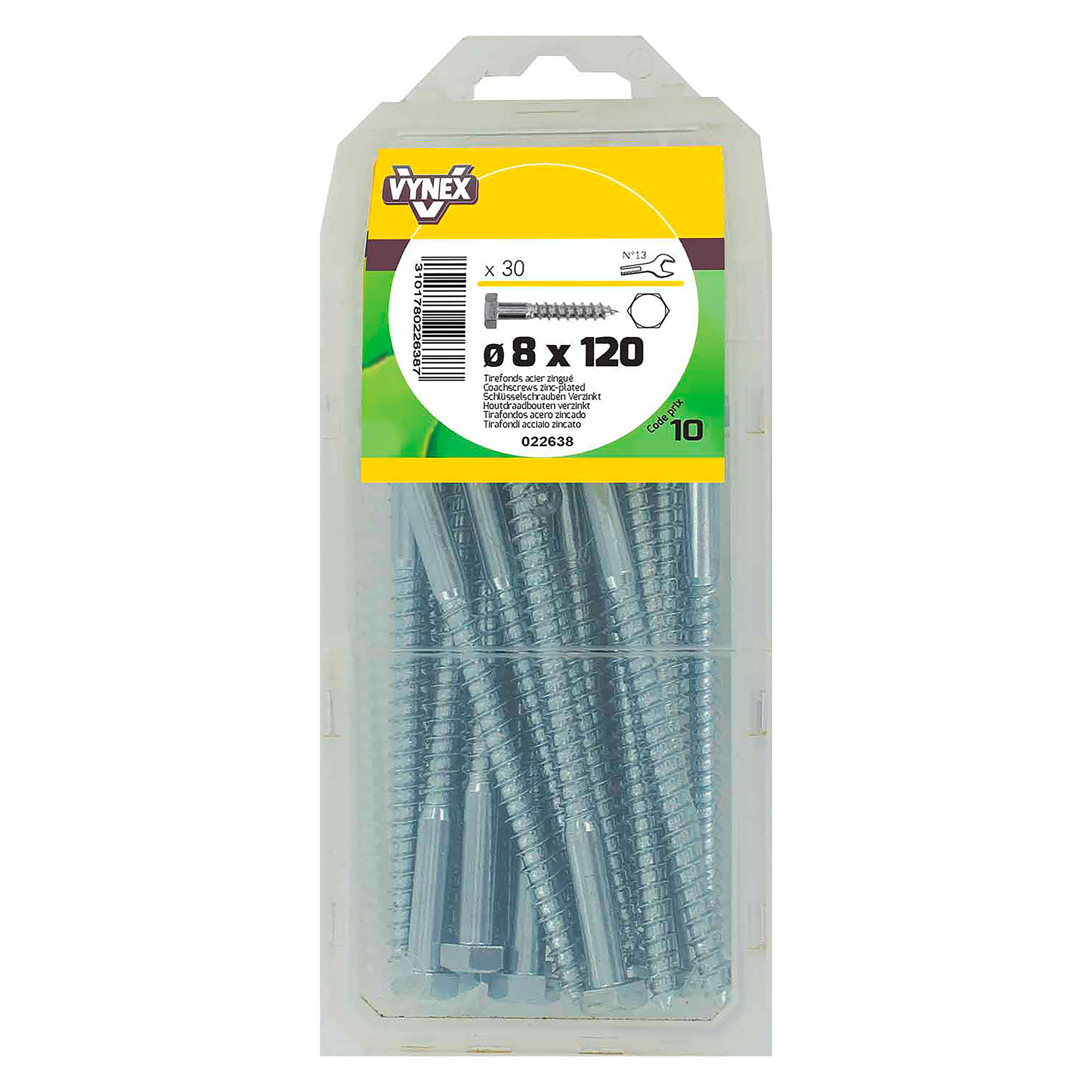 Tirefond acier zingué Ø 8 x L 120 mm - Paquet de 30