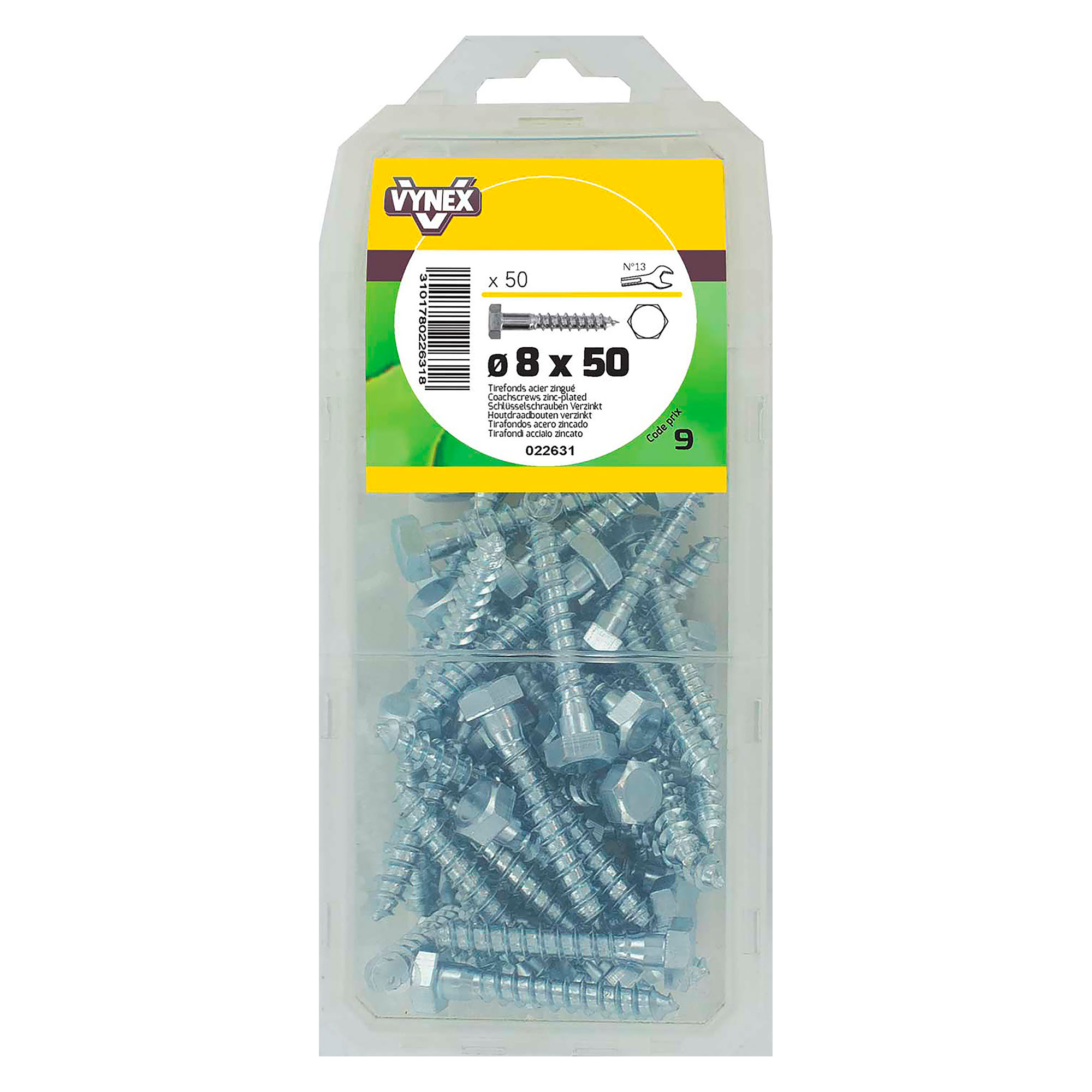 Tirefond acier zingué Ø 8 x L 50 mm - Paquet de 50