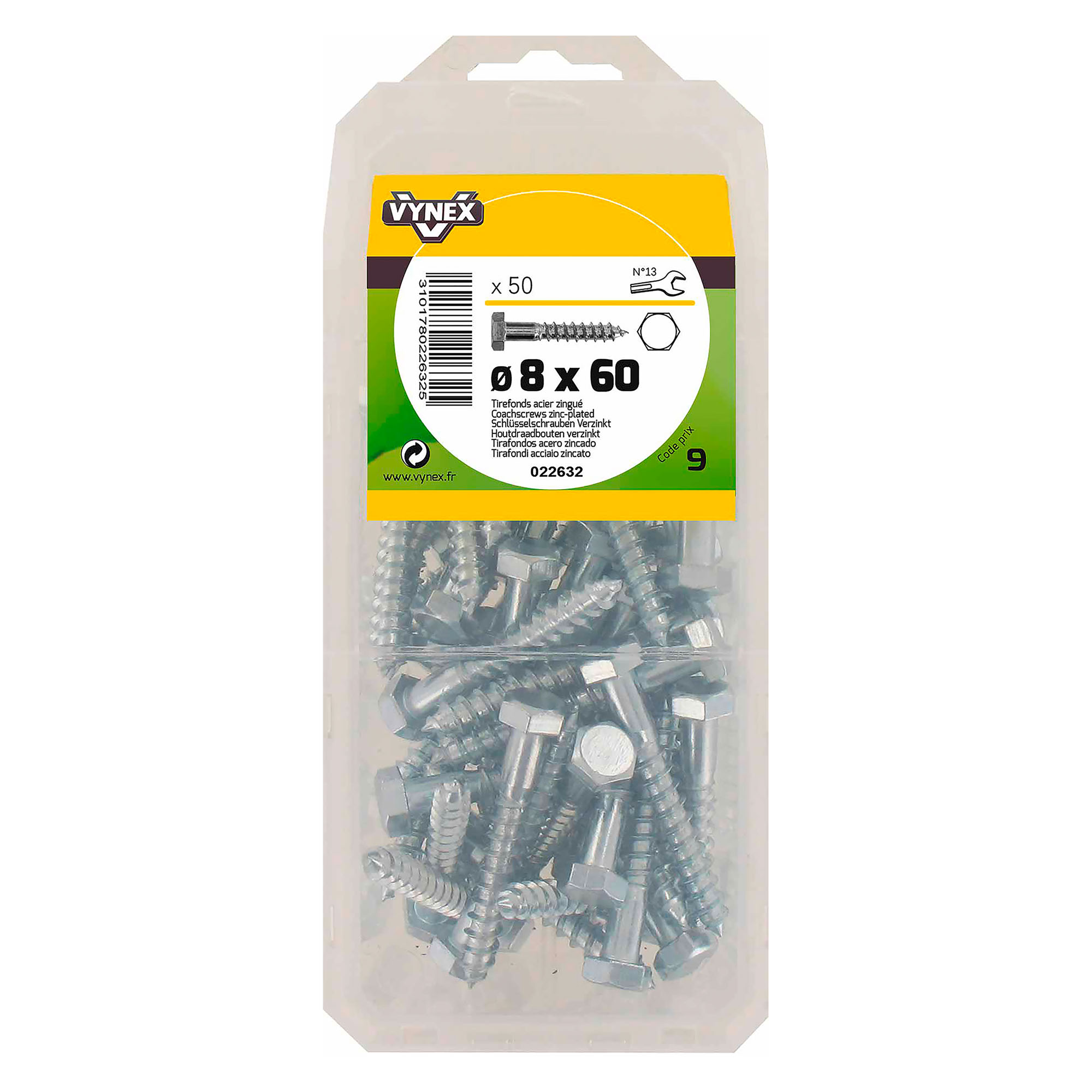 Tirefond acier zingué Ø 8 x L 60 mm - Paquet de 50