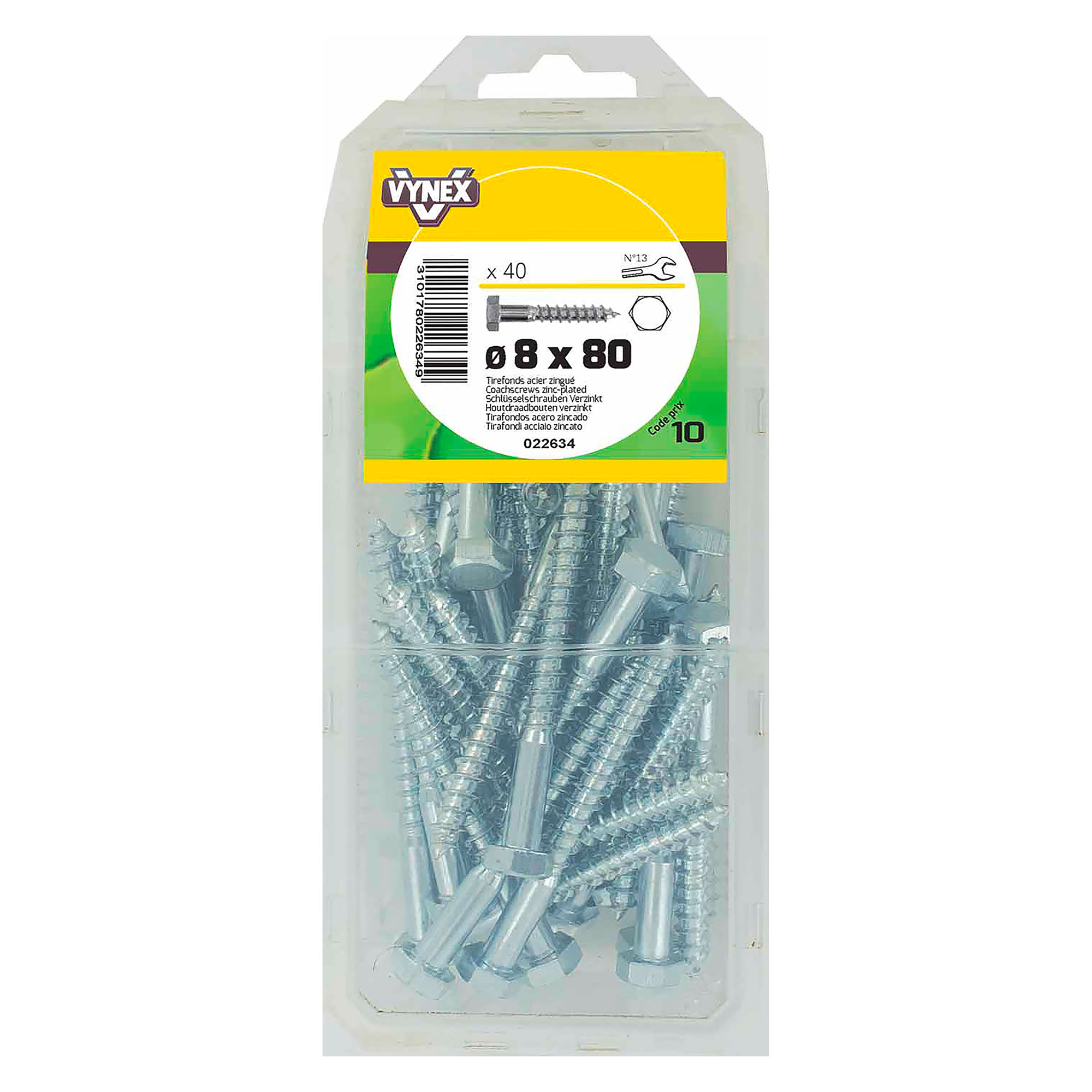 Tirefond acier zingué Ø 8 x L 80 mm - Paquet de 40