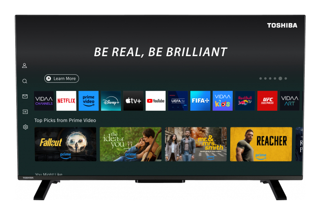 La télévision série QV2F, de Toshiba offre une combinaison équilibrée entre qualité d’image Full HD et expérience connectée intuitive. Avec sa dalle DLED de 40 pouces (100 cm), profitez d’une résolution FHD 1920 x 1080 et d’une luminosité de 220 nits, idéale pour des images nettes et contrastées dans toutes vos sessions de visionnage. Équipé de la technologie HDR, ce modèle enrichit le rendu visuel en optimisant les contrastes et en améliorant la profondeur des couleurs, pour une expérience plus réaliste. L’optimisation TRU Resolution contribue à améliorer la clarté des contenus et à offrir une image plus fluide, tandis que plusieurs modes d’image (Cinéma, Sport, Dynamique, Naturel) permettent d’adapter l’affichage selon vos préférences. Côté son, le téléviseur intègre deux haut-parleurs de 2 x 8 W RMS compatibles DTS et avec un égaliseur 5 bandes, garantissant une restitution claire et équilibrée. La partie connectée repose sur la plateforme VIDAA Smart Portal, simple et réactive, qui vous donne accès aux applications de streaming incontournables telles que Netflix, YouTube et Prime Video, mais aussi au partage de contenus via Bluetooth et la fonction écran miroir. Avec la compatibilité HbbTV 2.0.2, vous profitez également des services interactifs et du replay directement depuis vos chaînes. Compact et léger, il intègre une connectique complète incluant 2 HDMI, 1 port USB, une entrée antenne et une sortie casque, pour accueillir tous vos équipements multimédias. Enfin, son classement énergétique E et sa consommation de seulement 37 kWh/1000h en mode SDR contribuent à limiter son impact énergétique.