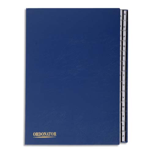 Trieur rigide alphabétique, format A4, dimensions 25 x 33 cm.