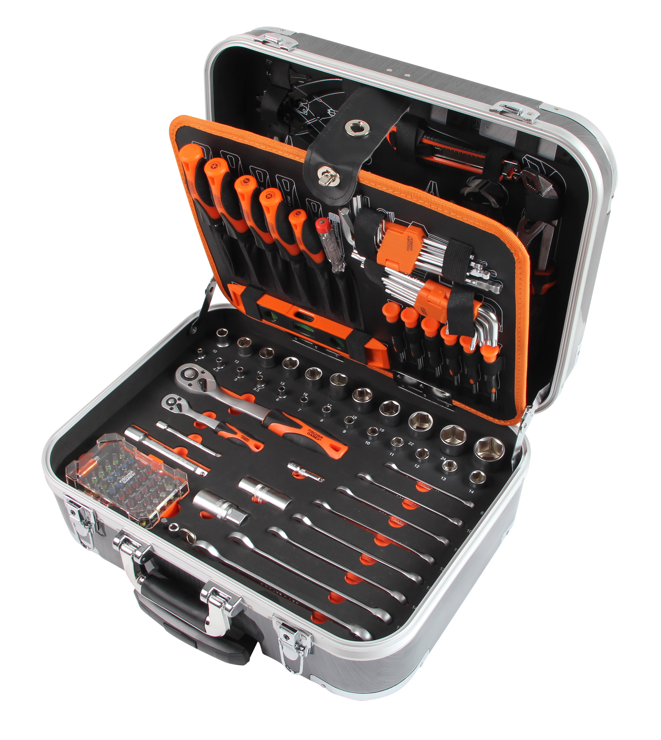 Cette valise à outils est équipée de 4 rangements modulaires offrant un accès rapide et organisé à l’ensemble des équipements. Elle contient 174 pièces soigneusement sélectionnées pour couvrir un large éventail d’applications.