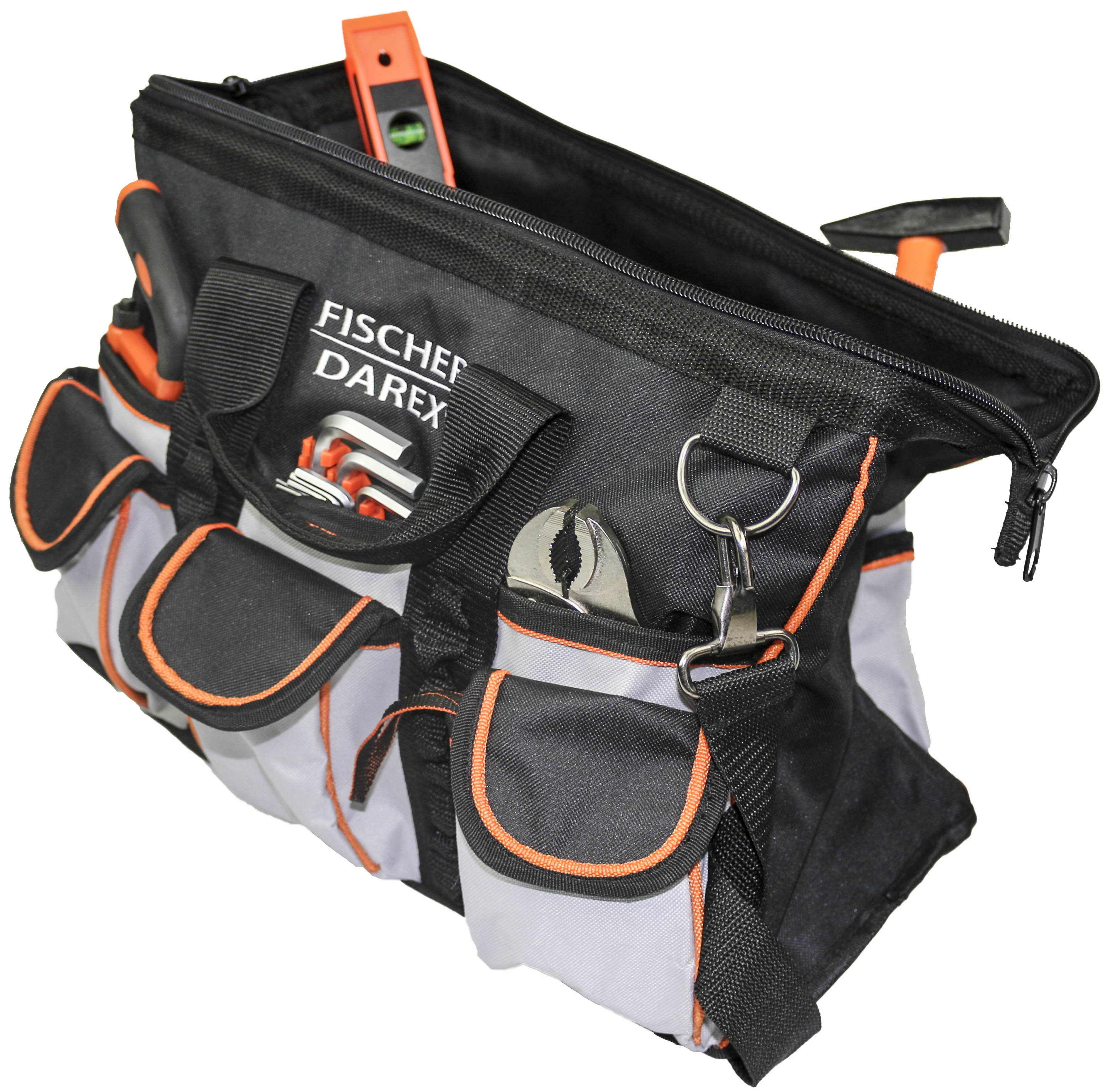 Équipé d'un large compartiment central et de 32 poches (16 extérieures et 16 intérieures) de différentes tailles, ce sac permet un rangement ordonné et un accès rapide à tous vos outils.