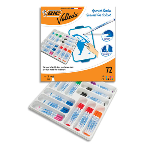 Le marqueur BIC Velleda 1721 est un outil d'écriture polyvalent, idéal pour une utilisation sur tableaux blancs. Conçu pour répondre aux besoins des environnements scolaires et professionnels, ce coffret de 72 feutres offre une solution pratique et économique pour ceux qui recherchent des marqueurs de qualité.