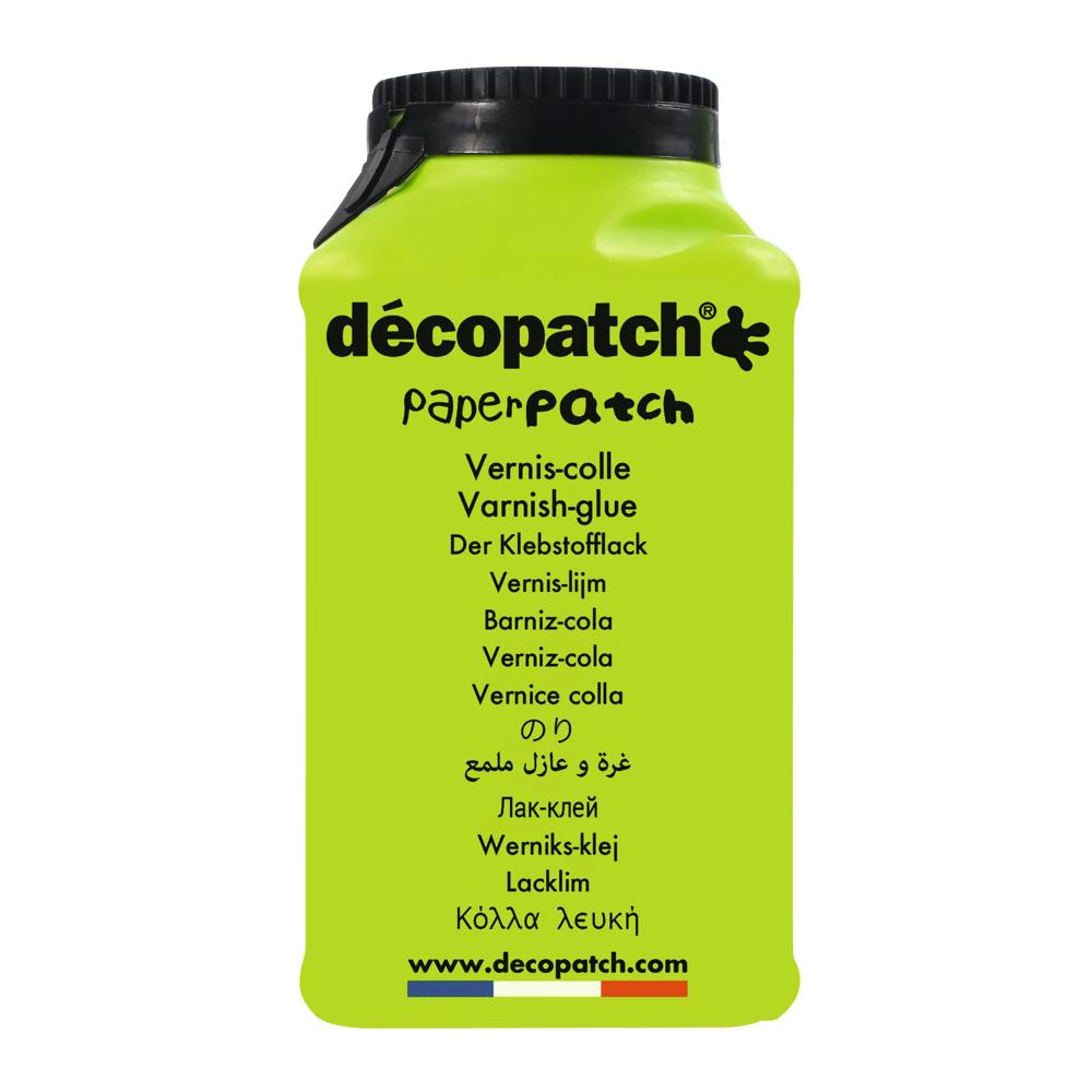 CONTENANT : 300 ml de vernis-colle. Le vernis-colle Décopatch est fabriqué en France, près de Lyon (69). Décopatch est une marque fr ançaise appartenant au groupe Clairefontaine Rhodia.