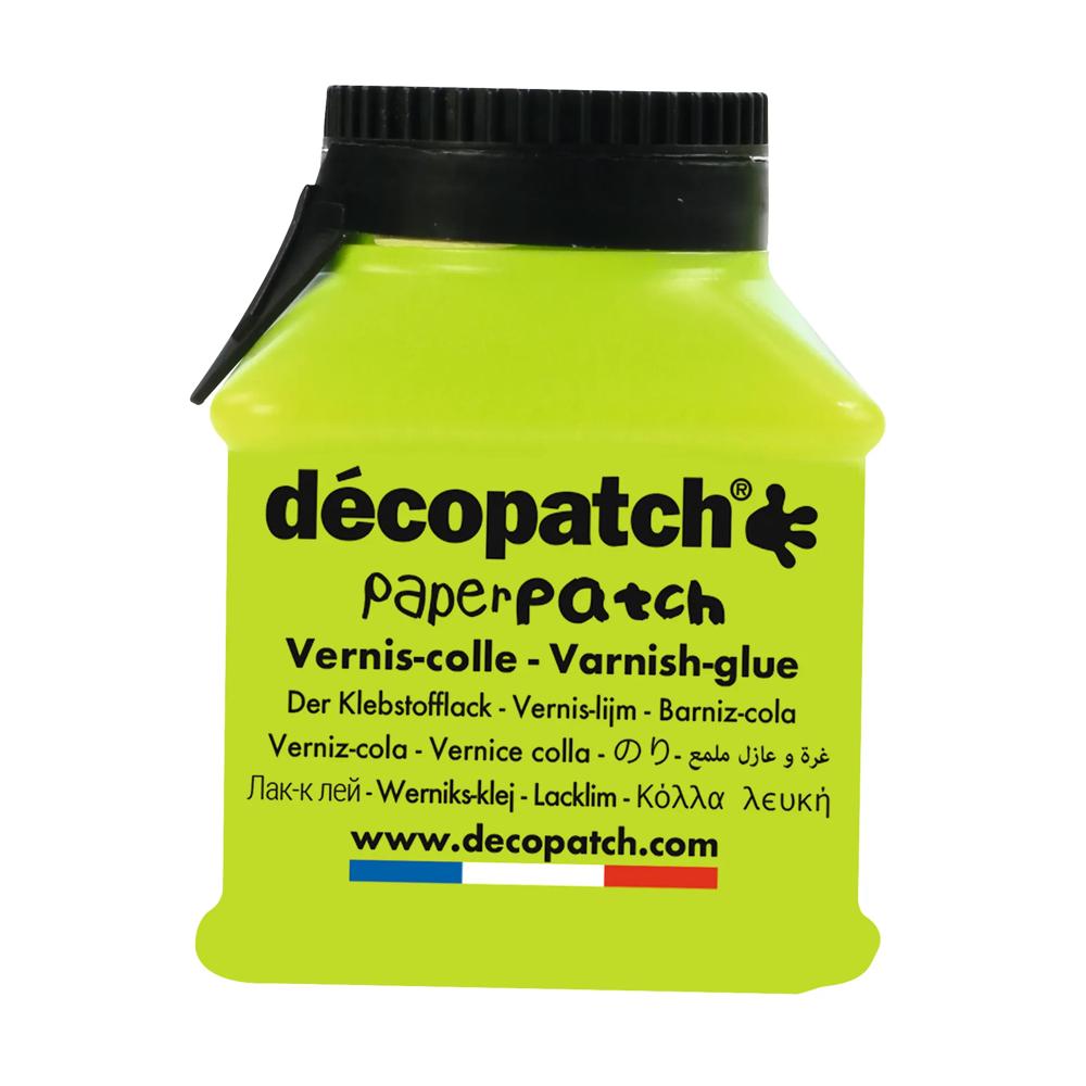 CONTENANT : 70 ml de vernis-colle. Le vernis-colle Décopatch est fabriqué en France, près de Lyon (69). Décopatch est une marque fra nçaise appartenant au groupe Clairefontaine Rhodia.