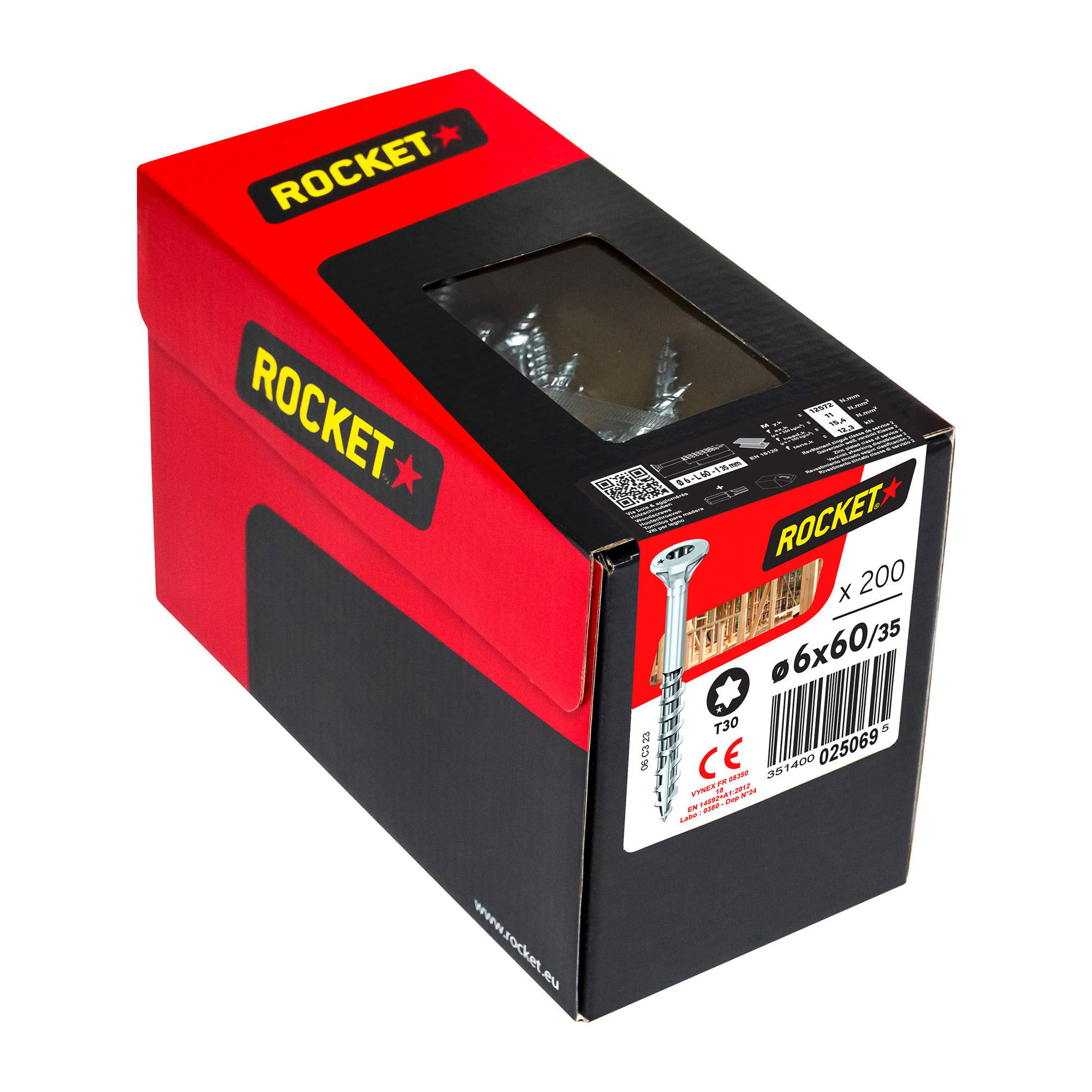 Vis Rocket tête fraisée étoile acier zingué, filetage partiel Ø 6 x L 60/35 mm - Boîte de 200
